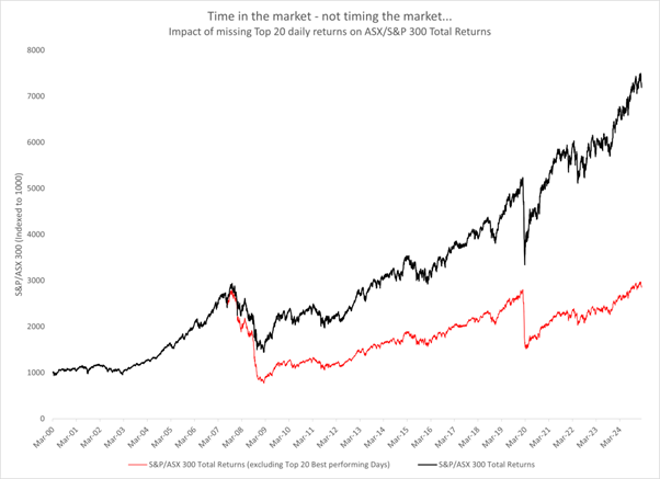 Market downturns can be disconcerting for investors that are conditioned to markets going up. But, for most participants, the mathematical reality of missing rebounds may present a more significant risk than seeking to avoid temporary declines. This suggests that developing strategies to manage volatility within portfolios, rather than attempting to sidestep it entirely, aligns better with historical market behaviour and documented return patterns.